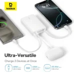 - Charge 3 Devices Simultaneously: Features 1 built-in 45W USB-C output cable, 1 USB-C output/input port (45W/30W), and 1 USB-A 22.5W port. Charge phones, laptops, and more all at once.