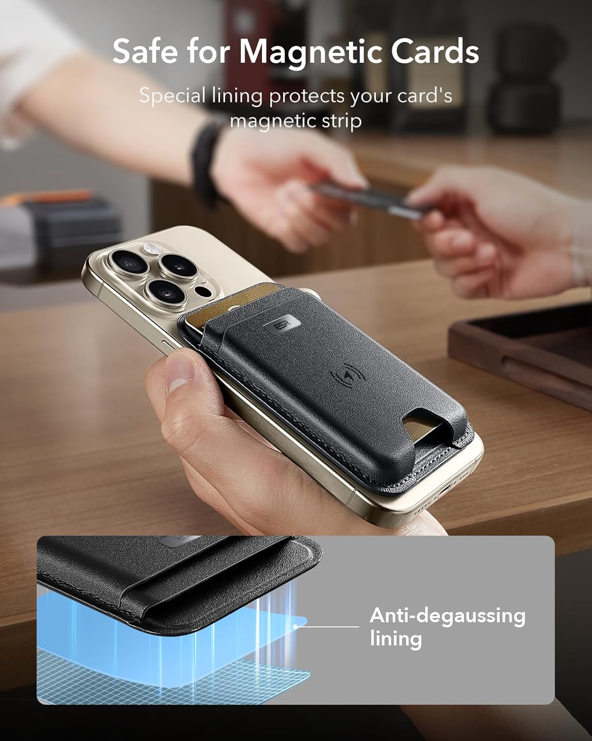 Stylish & Protective: Made from high-quality vegan leather with metallic mesh lining to prevent card demagnetization while elevating your iPhone’s look.