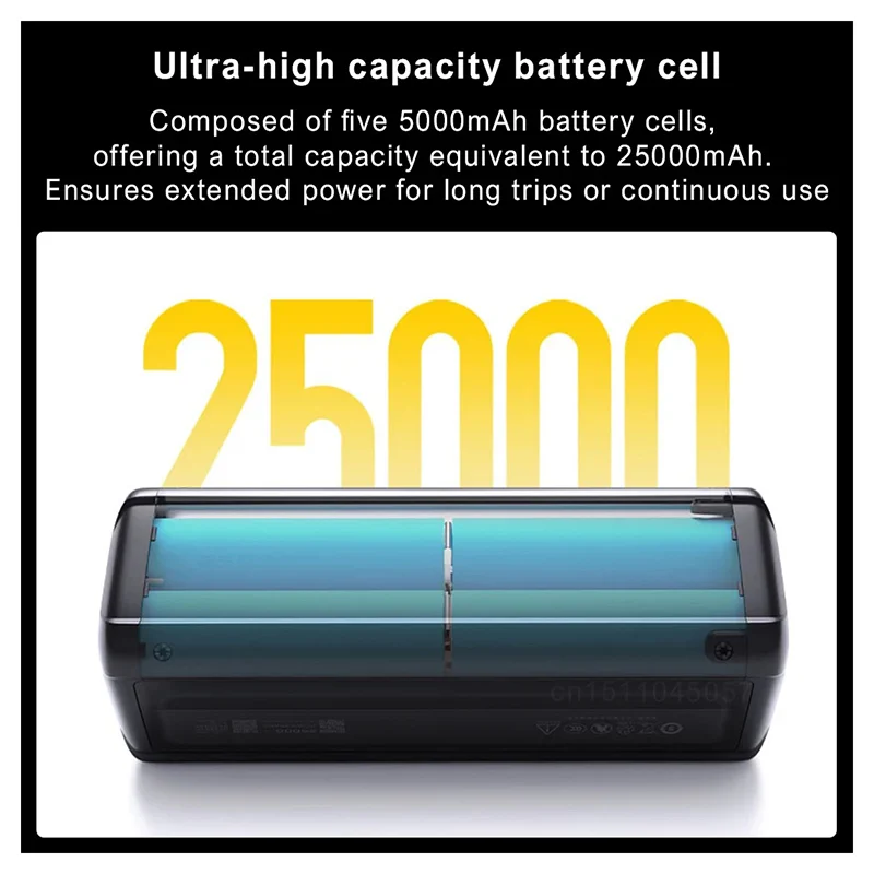 - Ultra-High Capacity: 25000mAh capacity (five 5000mAh battery cells) ensures extended power for long trips or heavy daily use.