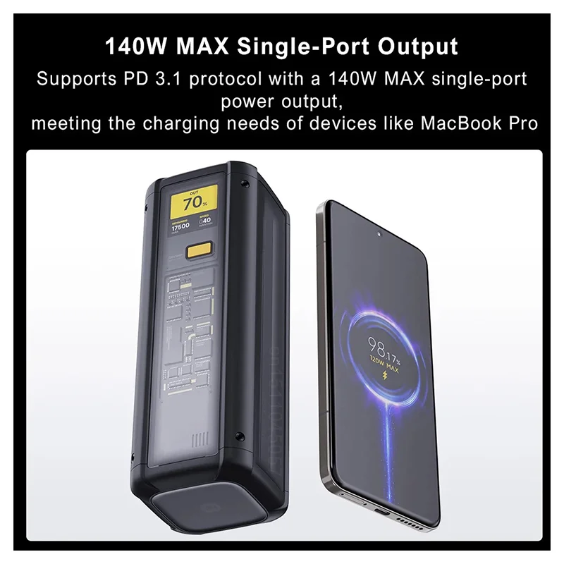- 140W MAX Single-Port Output: PD 3.1 protocol support with a 140W MAX output, perfect for power-hungry devices like the MacBook Pro. Capable of 120W fast charging for Xiaomi smartphones, fully charging a Xiaomi 14 Pro in ~20 minutes.