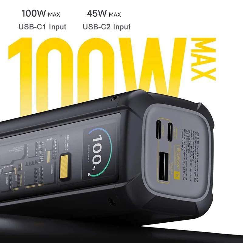 - USB-C Two-Way Fast Charging: 100W MAX input (USB-C1) recharges the power bank in just 2.5 hours. Comprehensive Safety and Efficiency